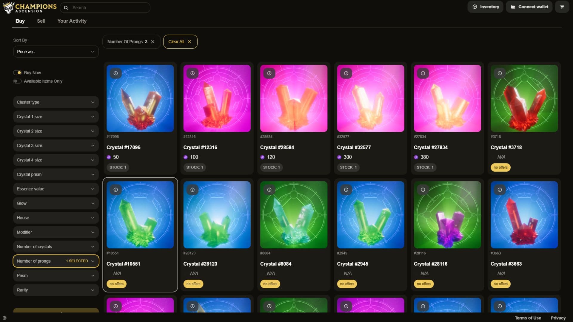 As you recruit new champions, they will start out as Grunts that can ascend through the ranks to challenger, gladiator and eternal tiers. To level up your character you must battle and earn the essence of your opponents. Essence can be consumed raw to gain XP or crafted into crystals that can be traded to other players for crypto, or consumed for additional bonus XP.