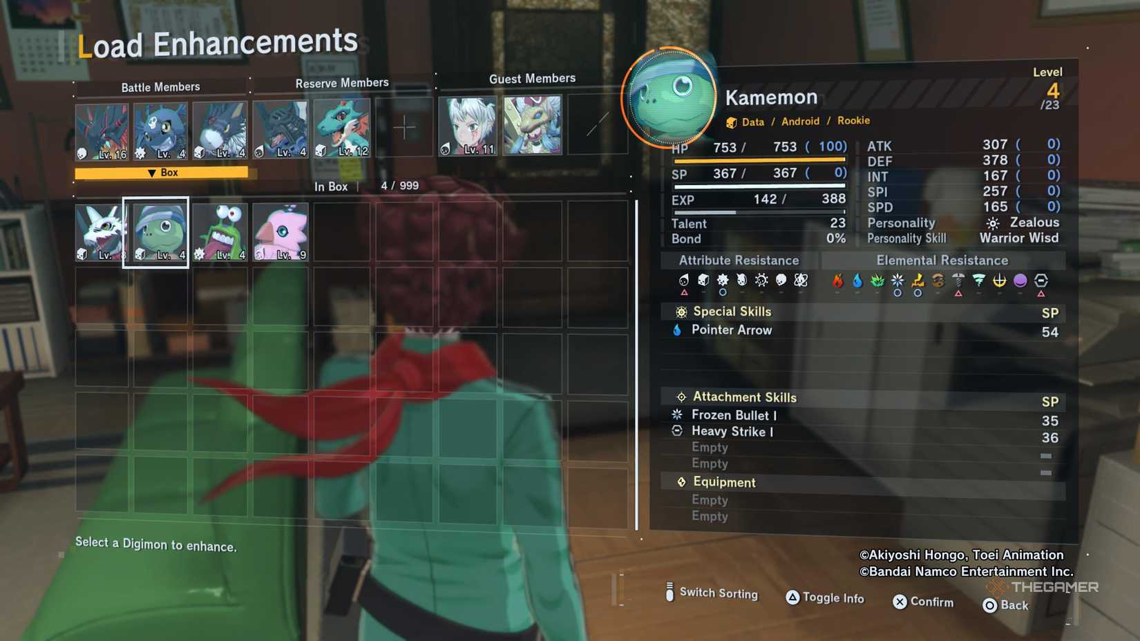 The Load Enhancement feature lets you sacrifice unwanted Digimon to strengthen your main team. When loading Digimon:
