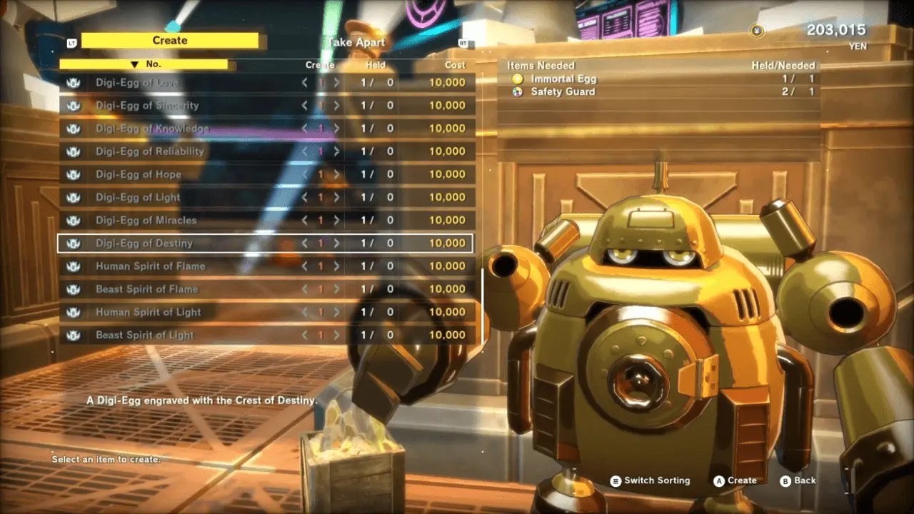 The forge becomes your one-stop shop for all Digi-Egg crafting needs. However, these aren't simple purchases - each egg requires specific materials and costs exactly 10,000 Yen regardless of type.