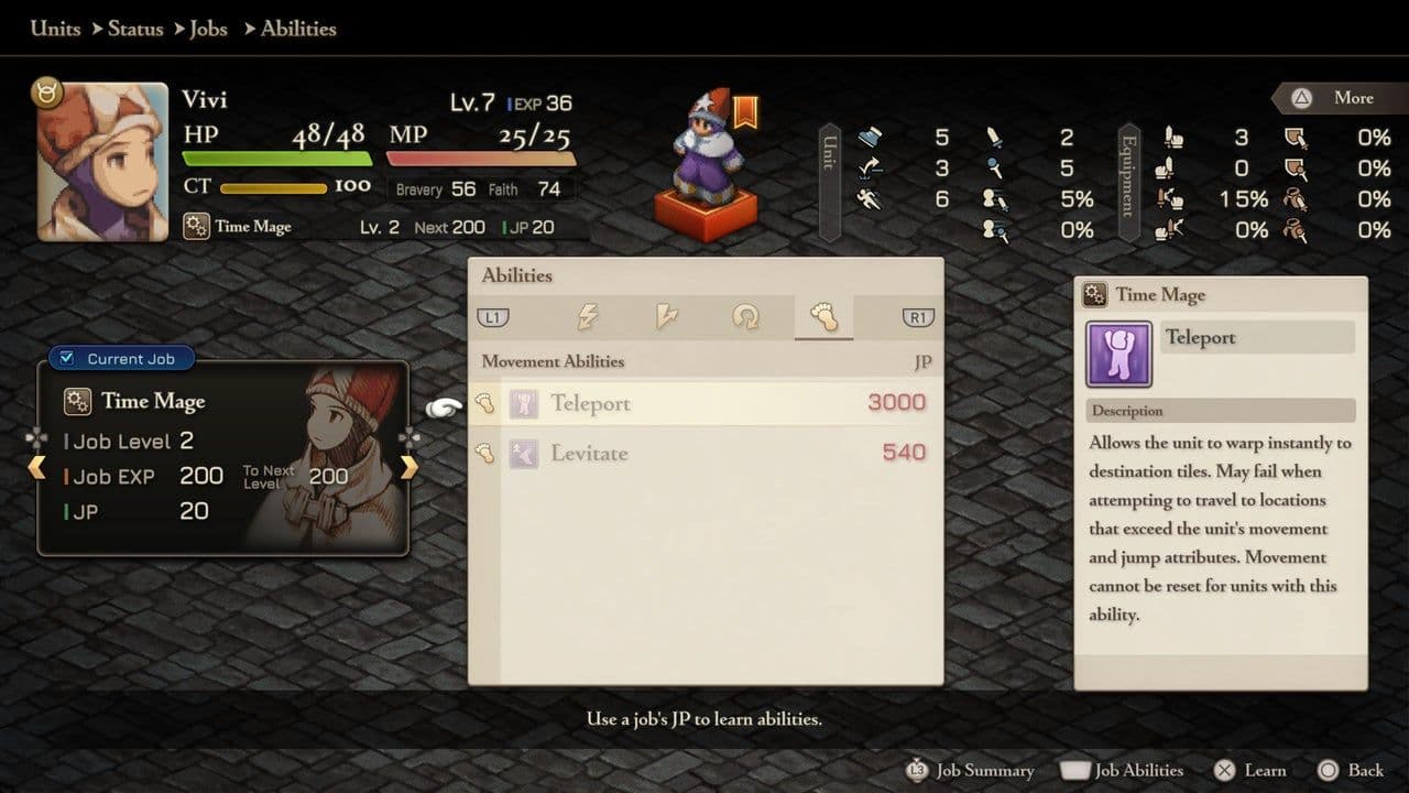 Invest time learning crucial movement abilities like Teleport and Move +3 even on characters who won't pursue those jobs long-term. These abilities provide permanent advantages throughout the remaining game.