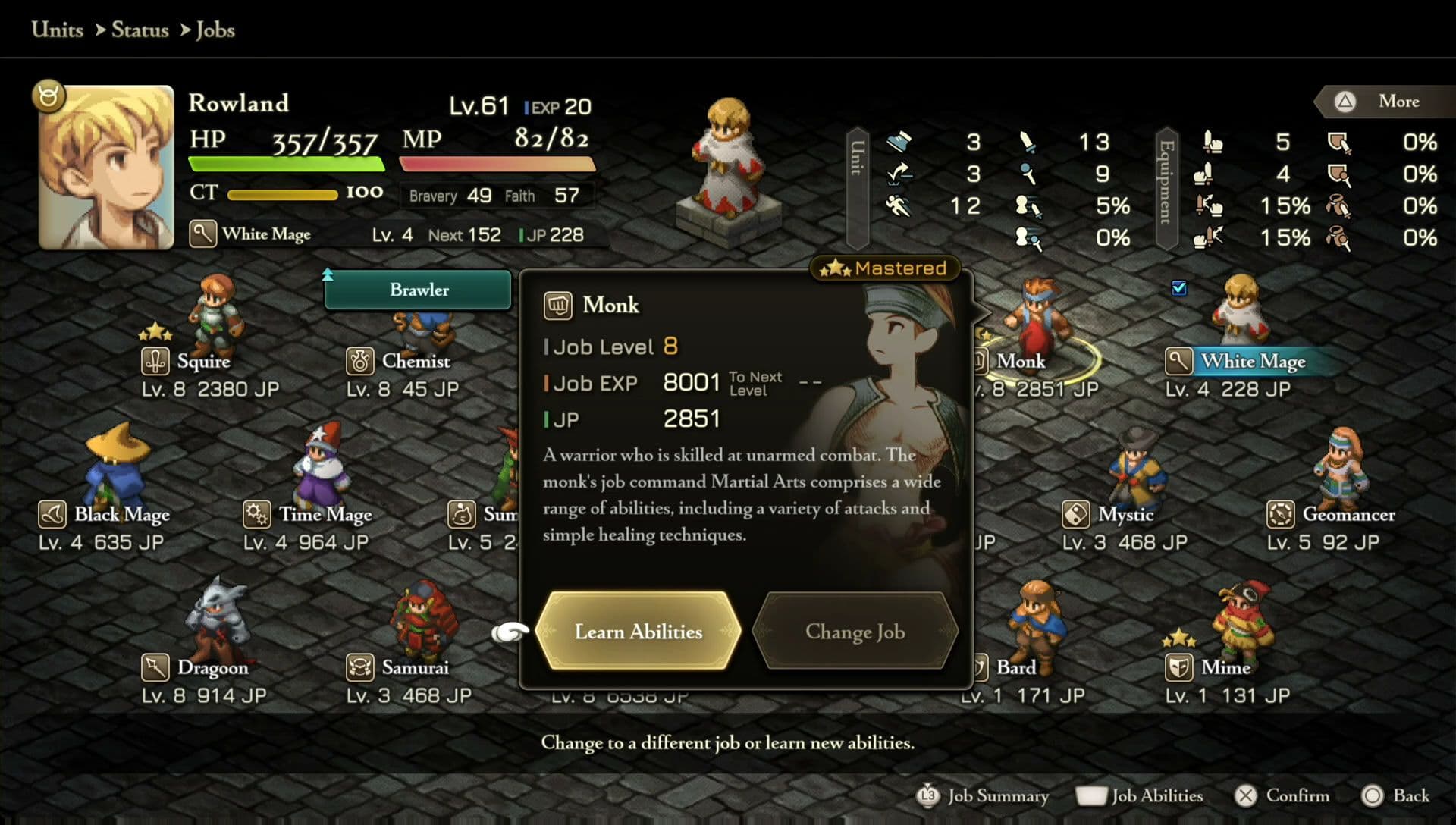 Use Focus when you can't attack enemies to generate JP efficiently. This dramatically accelerates job progression during early battles.Mid Game Optimization (Chapters 2-3)
