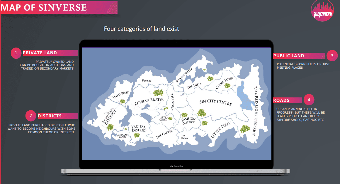 Au cœur de Sinverse se trouve la gestion stratégique de l'immobilier virtuel et des entreprises criminelles. Les joueurs commencent leur périple en acquérant des parcelles de terrain dans différents quartiers, chacun offrant des avantages et des défis uniques.