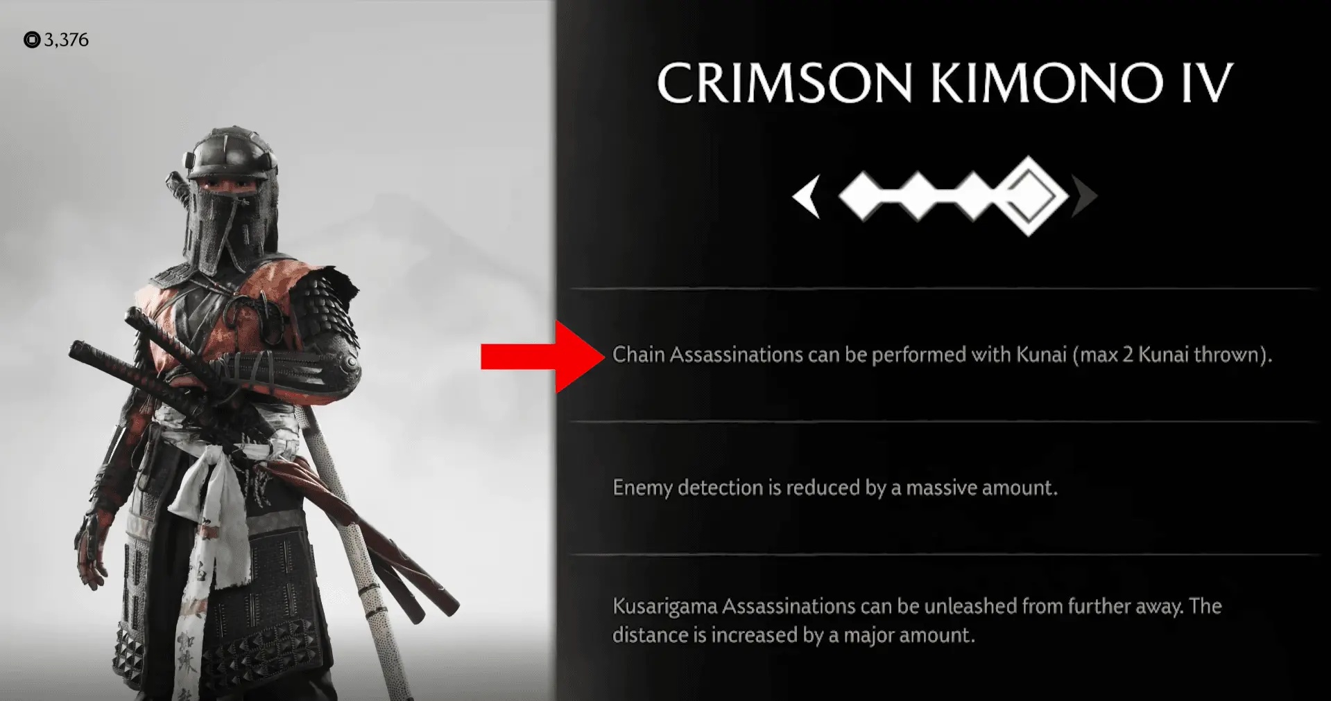 The kunai chain assassination feature stands as this armor's crown jewel. Instead of replacing your normal assassination chains, kunai strikes add two additional eliminations to your sequence. This means a single stealth approach can neutralize five enemies consecutively.