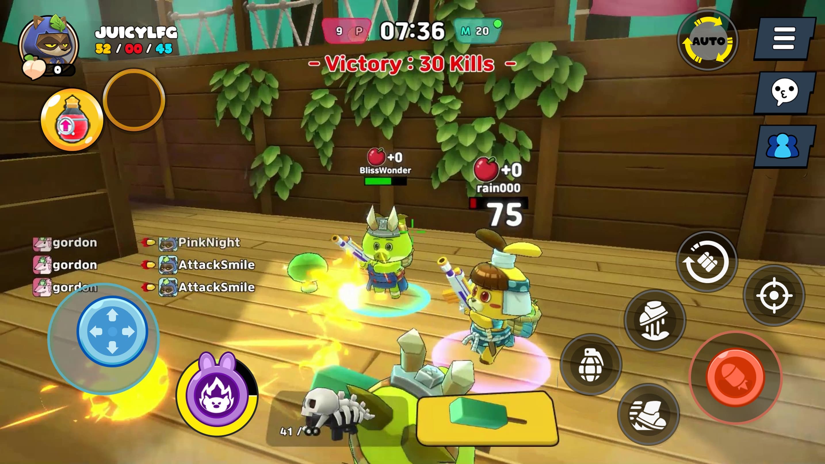 Map gimmicks add another layer of fun. Players can interact with the Juicy Blender to gain magical boosts such as unlimited ammo, increased damage, HP recovery, and more. New maps with additional creative features are also on the way to keep every match exciting and unpredictable.