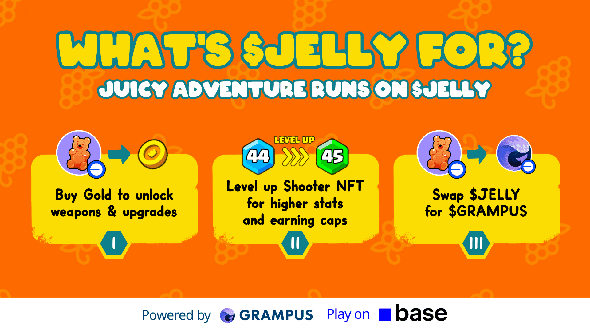 The $JELLY token serves as the foundation of Juicy Adventure's economy. Players earn these tokens by performing well in battles and participating in various game modes. The tokens can be used to upgrade Shooters and Skins, recharge earning counts, or even purchase in-game items. Additionally, $JELLY can be swapped for GRAM tokens, extending its use beyond the game. This system is designed to provide players with tangible benefits while maintaining a balanced economy that supports long-term engagement.