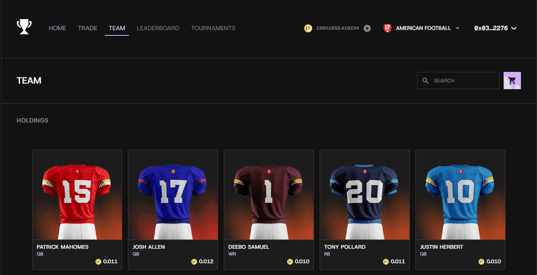 In Leagues.Fun, each athlete is a token called a Player Share. Owning a token means you hold a stake in that player’s real-world performance. When a player performs well on the field, it affects the token’s value, and when they underperform, the value can drop. This system encourages strategic planning when building a lineup.