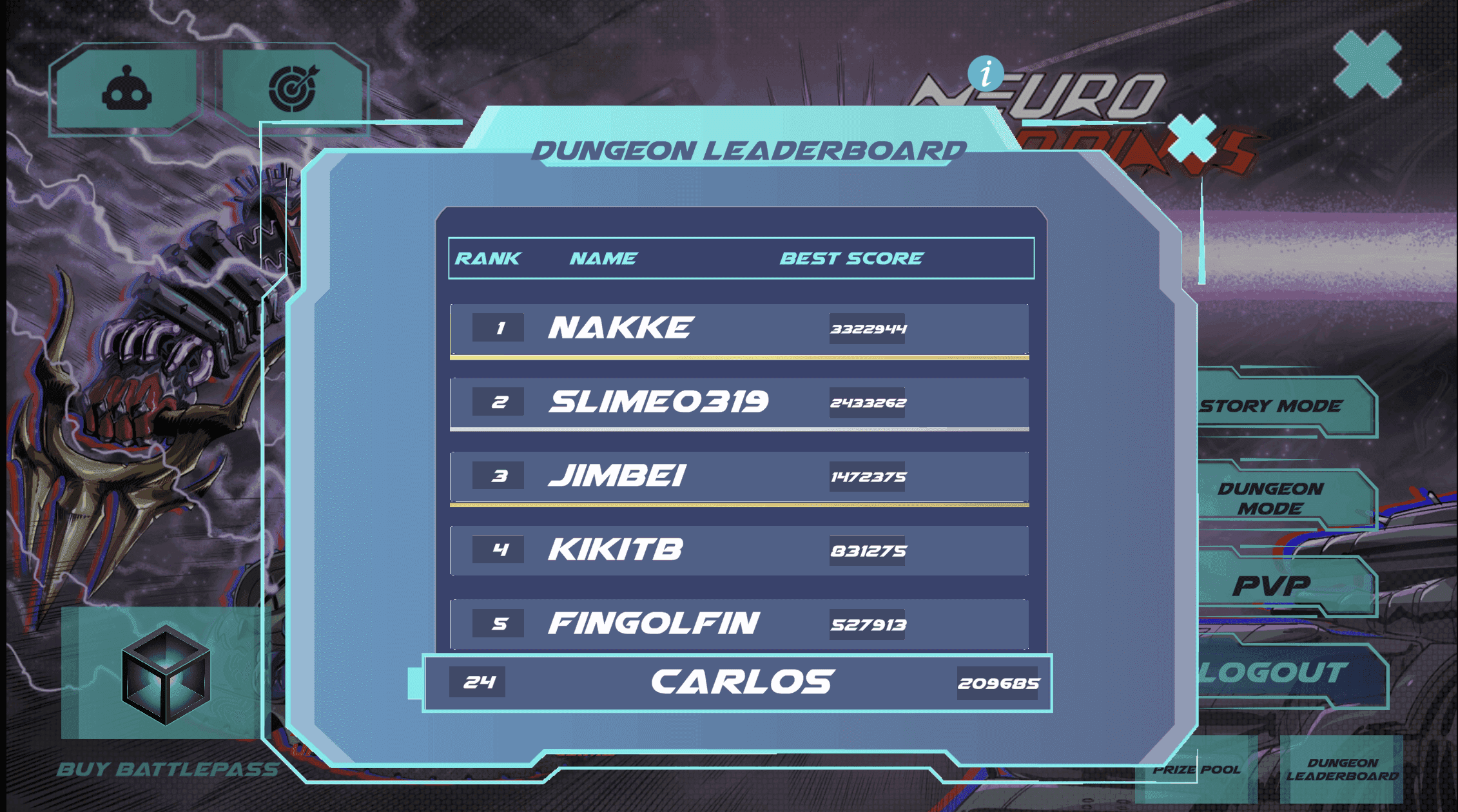 - Leaderboard 2 (Dungeon Leaderboard) – Tracks the top 10 players specifically in Dungeon Mode. Here, the ranking is based on the best run performance rather than total points, emphasizing skill and strategy in dungeon challenges.