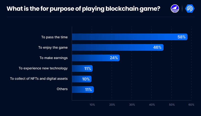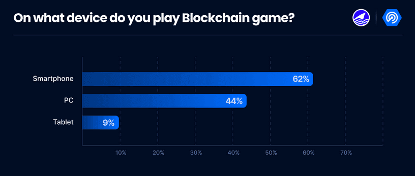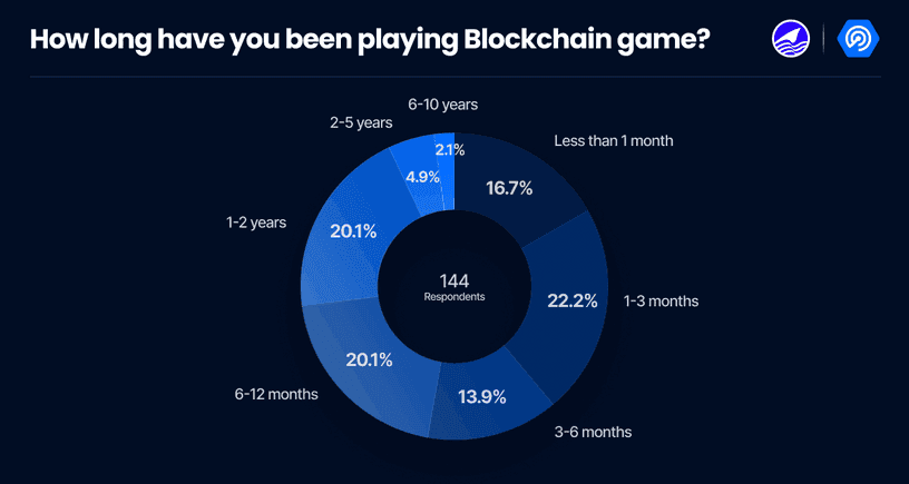 An impressive 72.9% of respondents indicated that they commenced their blockchain gaming journey within the last year, signaling a substantial influx of new participants into the market despite the challenges posed by the prolonged period of crypto winter.