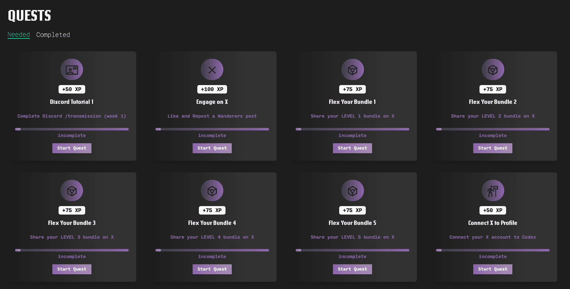 In the weeks leading up to the Closed Beta, a series of new Quests will gradually emerge on Codex. Announcements regarding these new Quests will be made on X and Discord platforms, so it's essential to ensure that your notifications are enabled. To access the Quests, simply log into Codex, navigate to My Profile, and scroll down to find the Quests section.