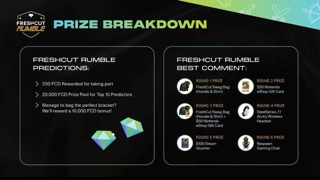 The FreshCut Rumble won’t give the spotlight solely to the video game characters featured but the community is set to have some love thrown their way as well. The FreshCut Rumble Predictions will reward you with 200 $FCD for taking part in the voting, with a 20K $FCD prize pool shared between the top 10 predictors.
