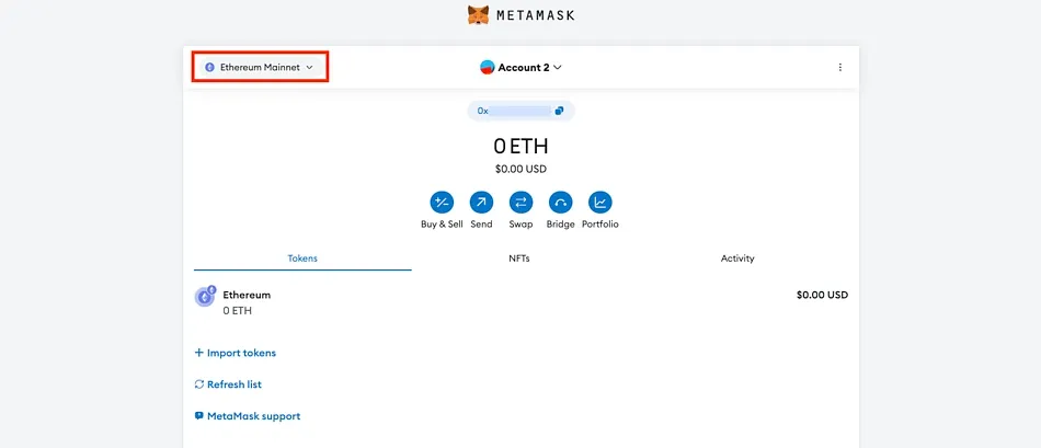 - Log into your MetaMask account and click on the network dropdown.
