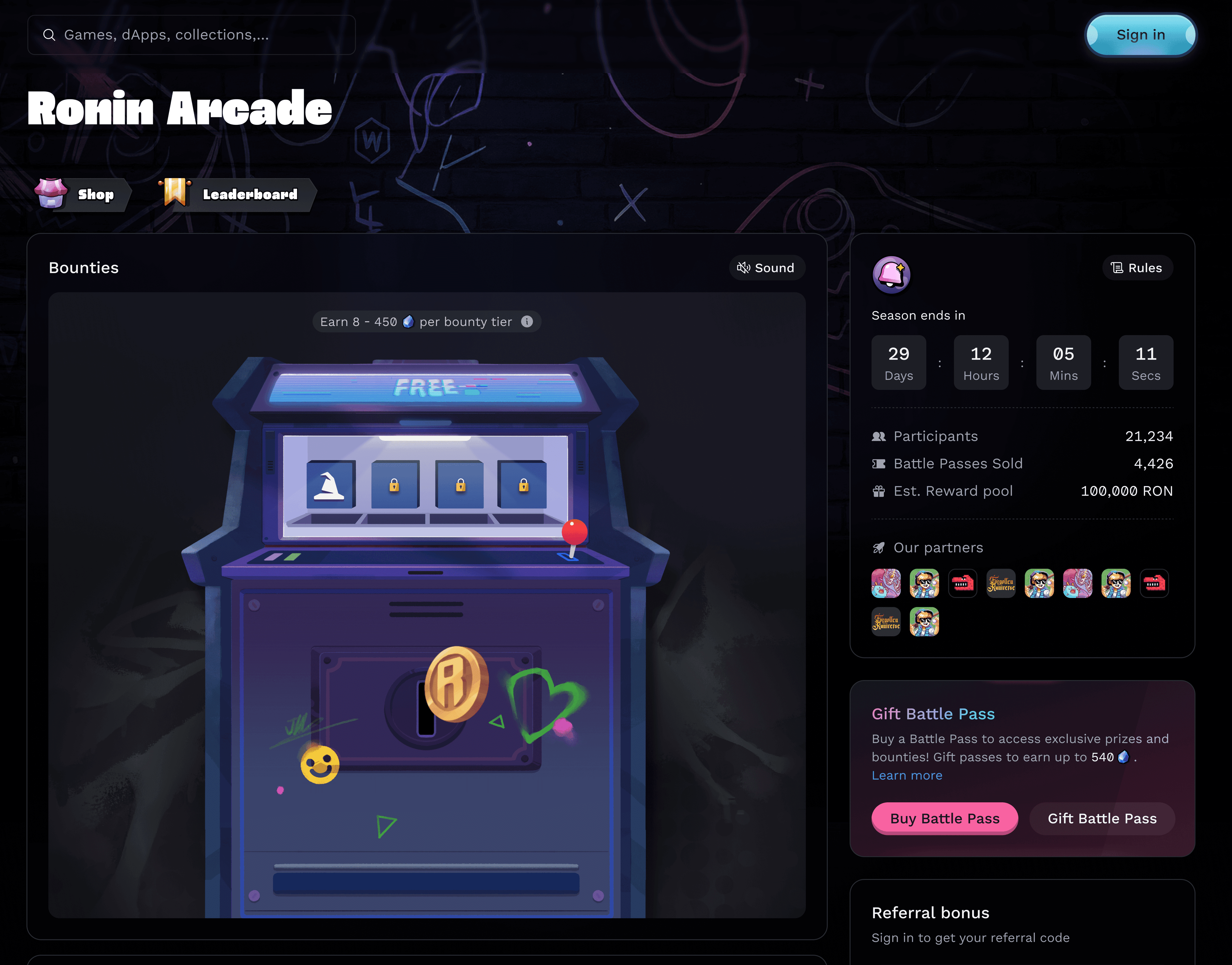 Joining Ronin Arcade is straightforward. Players simply sign in through the official event portal, connect their wallet, and purchase a Battle Pass to access premium quests. Free and social-tier participation options are available for those who prefer to play without upgrading, though with limited rewards compared to premium participants.