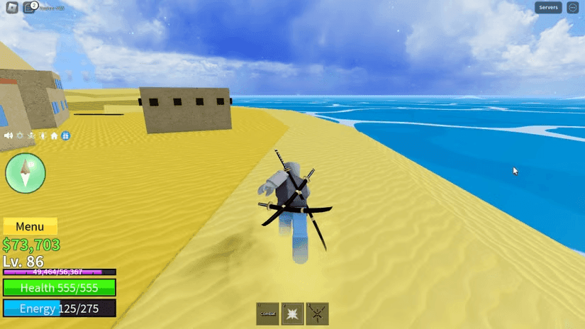 - Encontrar e comer Blox Fruits para ganhar poderes especiais