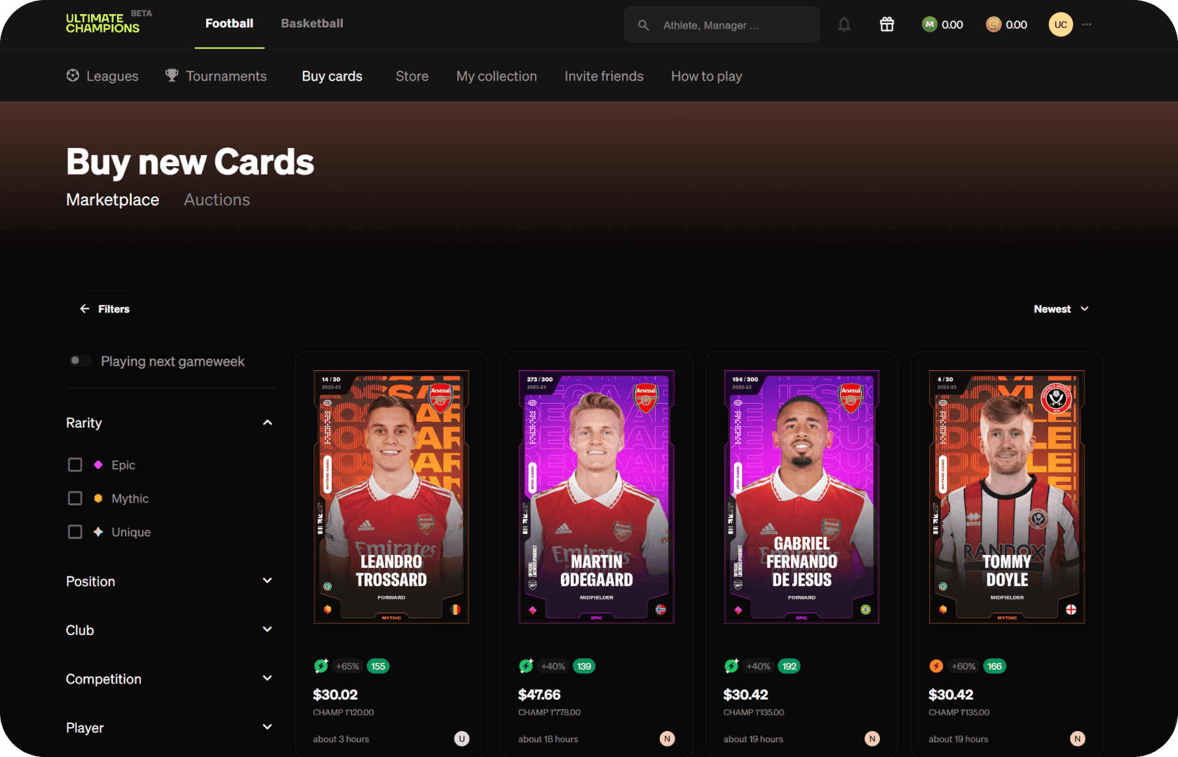 Ultimate Champions was designed to address some of the frustrations that players face with traditional fantasy sports games. In many games, you don’t really own the assets you collect, and once you stop playing, all that time and effort feels lost. With Ultimate Champions, the use of blockchain technology changes that. Here, the digital cards you collect and trade have real-world value, and they’re yours to keep or sell as you see fit.